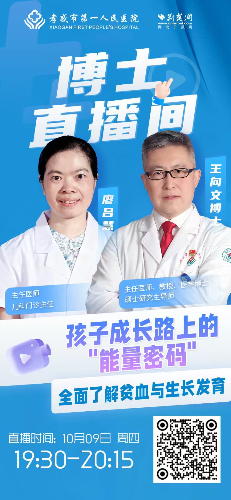 不用担心! 10月9日,星期四,晚上7:30,博士直播室特别邀请儿科专家回答单身儿童贫血的问题,并帮助孩子们找到充分的成长能量!