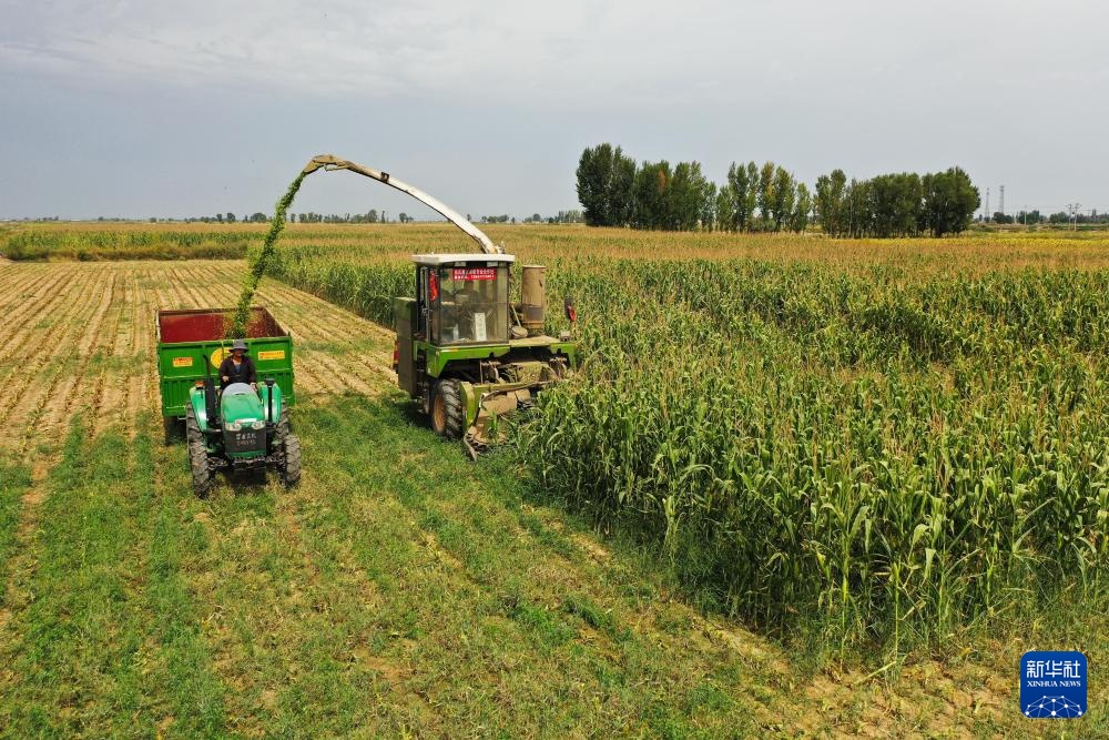 9月11日,农业机械操作员在农业机械中运营,在吉里加兰兹市的杭州·辛基(Hungzhou Zinki)(无人机照片)的吉根佐(Gegenzao)村收获青贮玉米。秋季,...