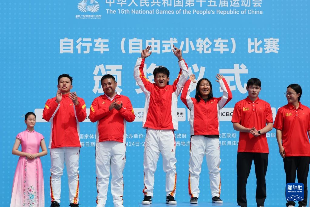 10月25日:获胜四川队的韦天王(左四)、第二名四川队的海阳(左二)、第三名河北队的张和强(右二)。...